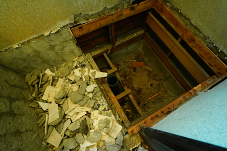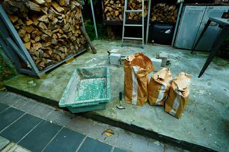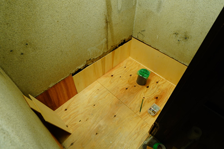 ![]() ![]() 刈り込みが終わった庭先の様子 ![]() 伐採が終わって明るくなった裏庭と大量の丸太 ![]() 穴があきそうな廊下の増し張りの様子 この後最後にクッションフロアで仕上げる ![]() トイレの配管をずらす際に勾配をつける為に使う台座を作っているところ 今回は廃材のブロックにコンクリートアンカーを使って金具を取り付けた ![]() 和式トイレを解体しているところ ![]() キッチンも解体・・・ |