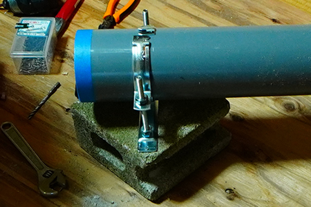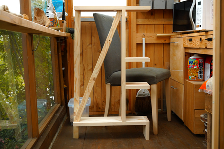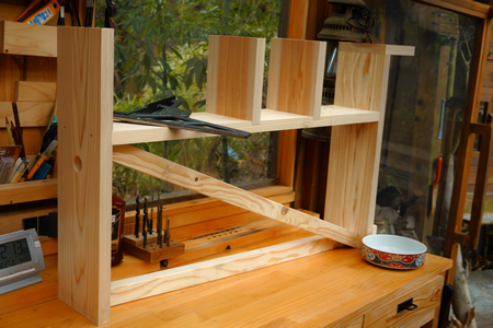 ![]() 製作中の様子 ![]() 立てたところ 中間のデッドスペースには上部から箒をさして収納することができるようにした ![]() 設置したところ |