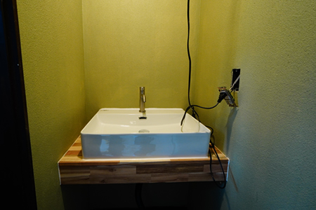 ![]() リフォーム前のキッチン ![]() リフォーム中の様子 ![]() 流し台を設置してある程度おわったところ ![]() 前回やっていた洗面台も完成 |