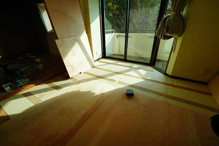 ![]() 現在進めている物件の現場風景 シロアリ被害がひどい物件で浴室周りの大引きは食われて全滅だった どうにか交換して一部駄目になっていた柱もジャッキアップして途中から入れ替えた ![]() キッチン周りもひどく同様にやり直した 元々のキッチンが床から一段下がって、土間の上に設置されている変な作り だったせいで床を貼ると既存窓の位置がおかしくなってしまった… 問題だらけの物件である ![]() こちらは同じ物件の床レベルも調整の様子 2.3mほどで最大4.8cmも下がっている箇所があった… 300ピッチで墨引してからレベル出しして、塚になる材木を配置してから構造用合板 で床を作ることにした ![]() ![]() こちらは箱根の物件の修繕風景 元々のカーペットを剥がしてから構造用合板で床を増しばりしてフロアタイルを貼った 最終日は夜遅くまで作業して疲れたなぁ… |
