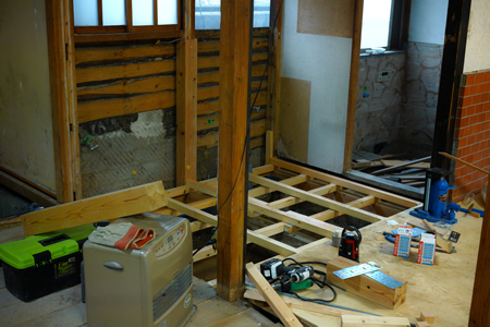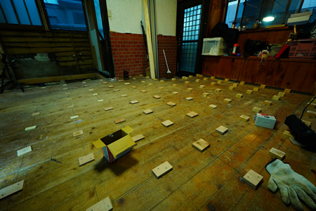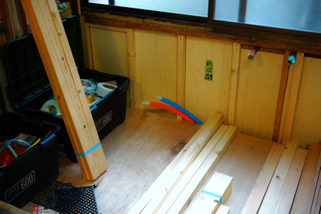 | 仕事で小田原に行くようになって早くも2ヶ月が過ぎてしまった 今の所は色々と問題点はあるものの現状の初心者メンバーでどうにか改修が終わりそうな目処が立ってきた 壁にパネルを張ったりという作業がまだまだ残っているものの建材の設置が終わればとりあえずは8割がた完成といった具合だろうか。 問題はもう一つの物件で、現在は家の壁の解体等が終わったところなのだが、家自体が15/1000位傾いててまずはこれをどうにかしないといけない。 トイレや洗面・洗濯機まわりの位置も変わるので排水の取り回しだけで割と時間がかかりそうだ |