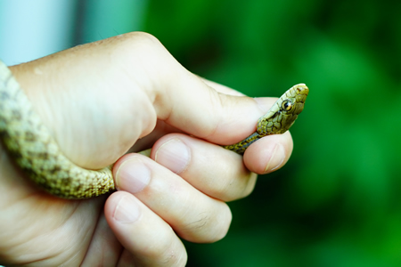 ![]() ![]() 捕獲したアオダイショウの子供 |